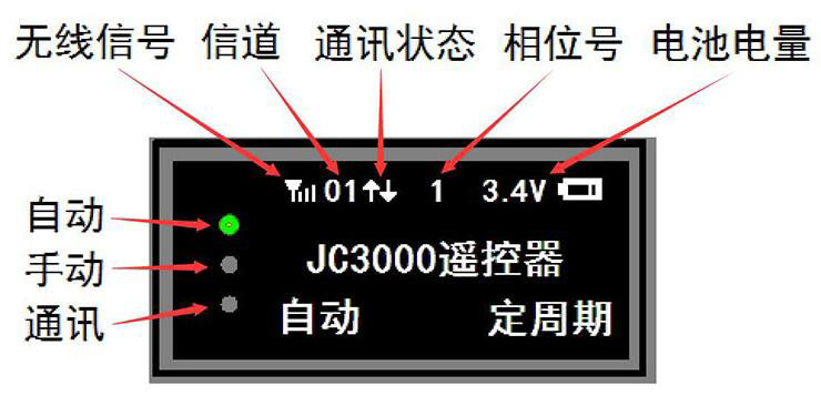 電源指示 | 自動/手動 | 無線發(fā)送 | 主控發(fā)送 | 運行狀態(tài) |