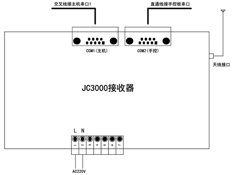 ● 將接收器安裝于信號機箱內(nèi)合適位置,并將對應(yīng)端子連接到信號機指定接口上(COM1接主機,COM2接手控板),接好AC220V電源;