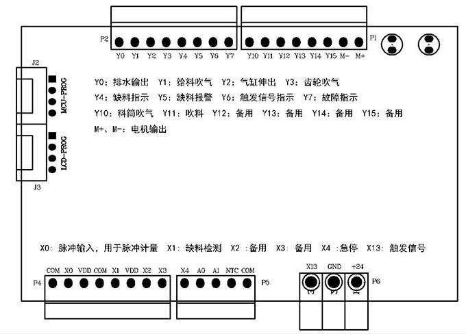 左側(cè)LCD-PROG為觸摸屏人機(jī)界面升級(jí)端口,MCU-PROG為程序升級(jí)端口。