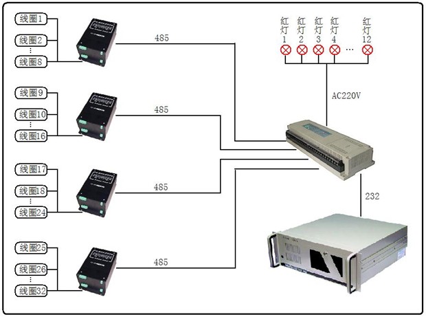 集中控制器與工控機(jī)采用232通訊方式(也可換成485),協(xié)議可定制;
