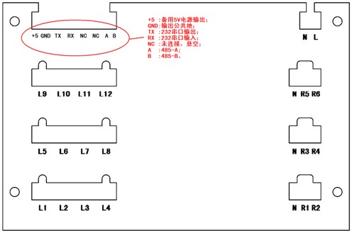 L、N為AC220V電源輸入端。
